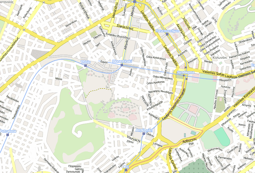 Im Umkreis sind berühmte Orten wie Turm der Winde, Musikinstrumenten-Museum sowie Am Römischen Forum. Beliebt sind auch diese Pläne: Athena-Nike-Tempel, Omónia-Platz, Archäologisches Nationalmuseum und Akropolis